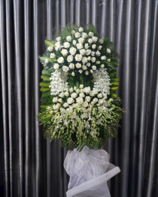hoa viếng hoa hồng trắng kết hợp hoa lan thái trắng